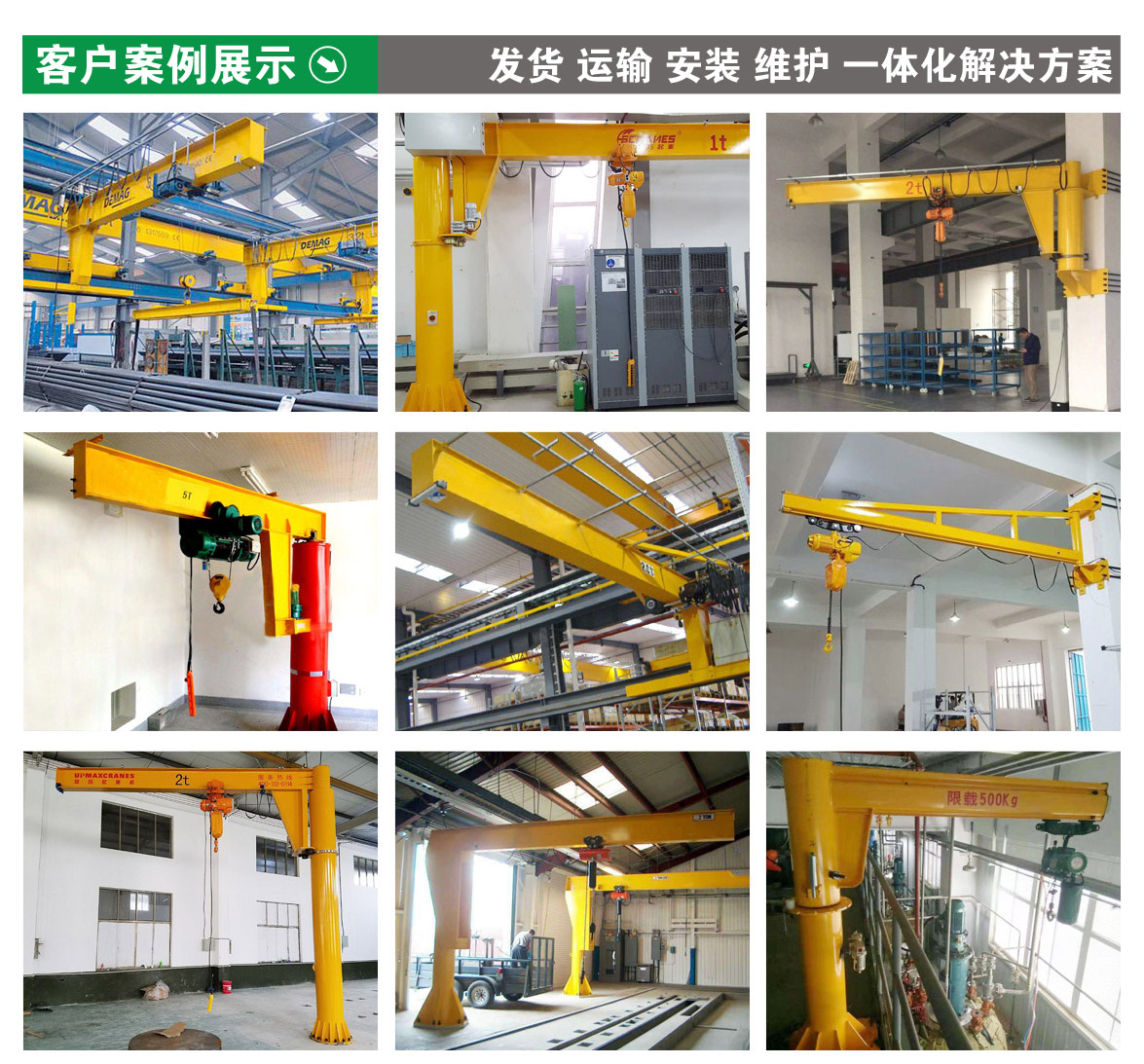 本公司專業銷售、安裝、改造、維修保養各種單、雙梁起重機、電動葫蘆等起重設備,并配備各種型號起重配件,以優惠的價格提供****的服務。公司以**的品質,良好的形象占領國內外市場,形成了龐大的銷售網絡和客戶群體,在同行業中具有很高的競爭力。