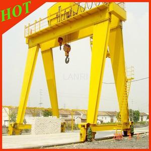 門式起重機是橋式起重機的一種變形,又叫龍門吊。主要用于室外的貨場、料場貨、散貨的裝卸作業。它的金屬結構像門形框架,承載主梁下安裝兩條支腳,可以直接在地面的軌道上行走,主梁兩端可以具有外伸懸臂梁。門式起重機具有場地利用率高、作業范圍大、適應面廣、通用性強等特點,在港口貨場得到廣泛使用。