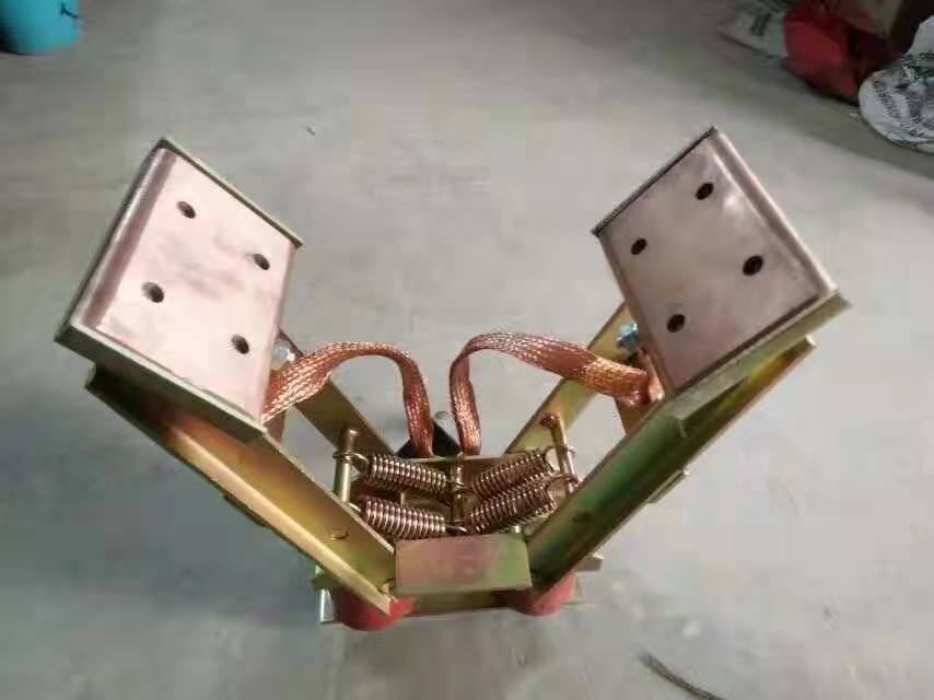 集電器滑觸線系統(tǒng)中集電側(cè)拾取電能的主要裝置,它通過集電刷與導(dǎo)軌的滑動(dòng)接觸,將電能直接傳導(dǎo)至用電器,從而實(shí)現(xiàn)系統(tǒng)的移動(dòng)供電。集電器由機(jī)械結(jié)構(gòu)的張力裝置和直接與導(dǎo)軌滑動(dòng)接觸的集電刷兩部分組成。