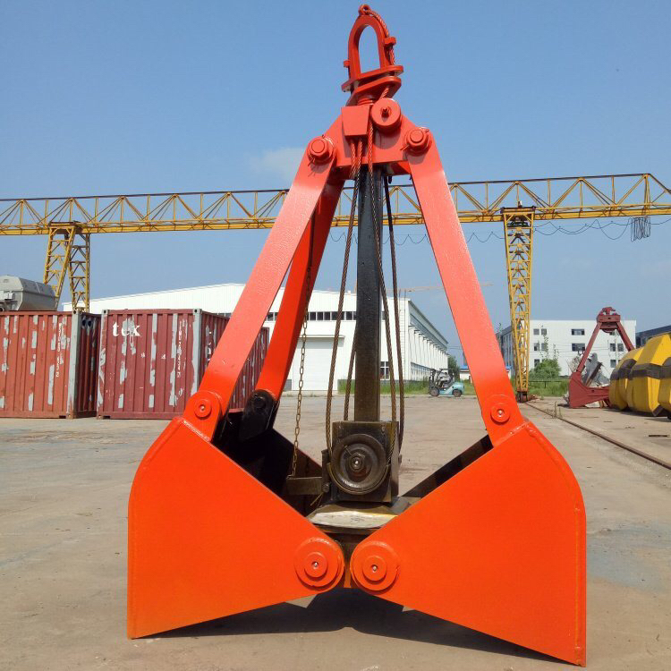 抓斗,是指起重機抓取干散貨物的專用工具。由兩塊或多塊可啟閉的斗狀顎板合在一起組成容物空間,裝料時使顎板在物料堆中閉合,物料被抓入容物空間,卸料時顎板在料堆上懸空狀態下開啟,物料散落在料堆上,顎板的開合一般由起重機起升機構鋼絲繩操縱。抓斗作業無繁重體力勞動,可達到較高的裝卸效率并確保安全,是港口主要干散貨裝卸工具。按作業貨物的種類,可分為礦石抓斗、煤炭抓斗、糧食抓斗、木材抓斗等。