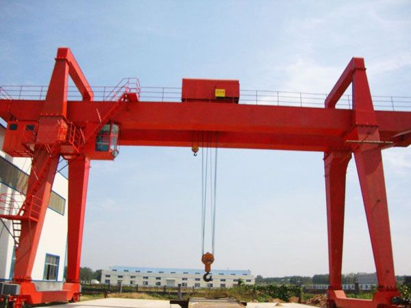 它的金屬結(jié)構(gòu)像門形框架,承載主梁下安裝兩條支腳,可以直接在地面的軌道上行走,主梁兩端可以具有外伸懸臂